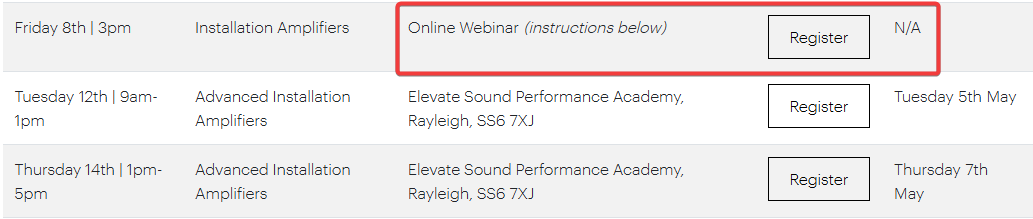 To register for a webinar ELEVATE Training course, first navigate to https://www.monitoraudio.com/en/espa-courses/ and select the Online course you would like to attend.